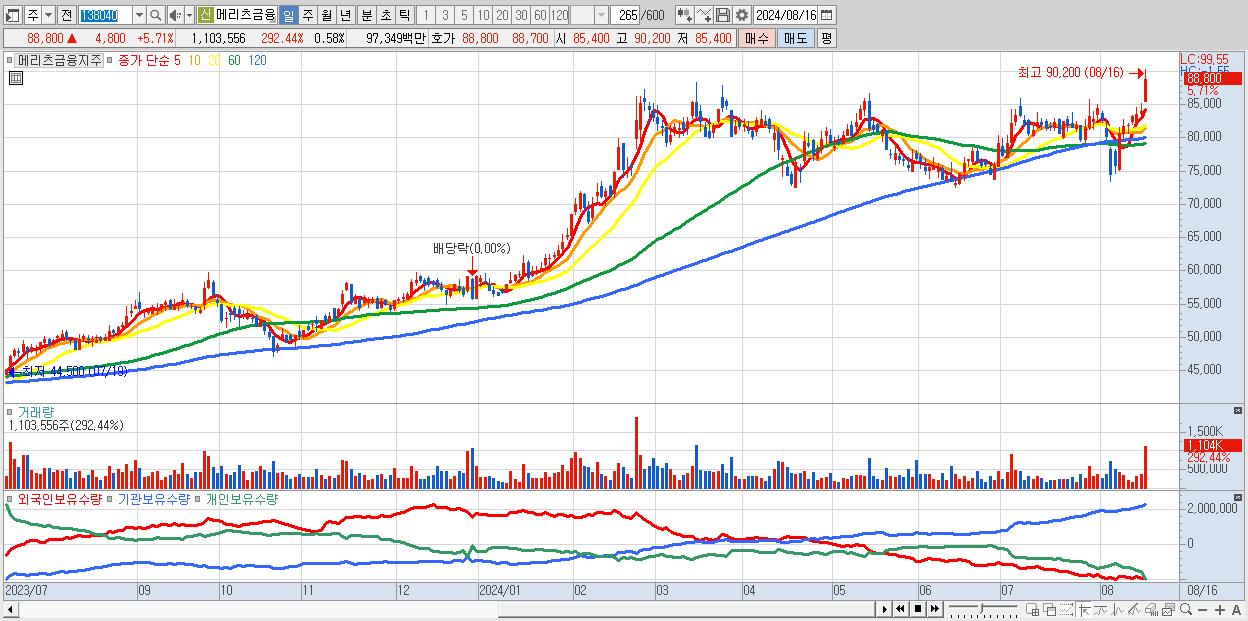 - 메리츠금융지주 (88,800원 ▲ 5.71% , 시총: 169,359억, 외국인 순매수 거래금:286억)