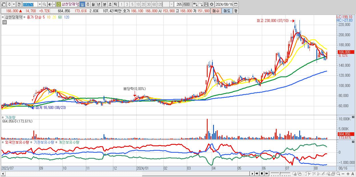 - 삼천당제약 (166,000원 ▲ 9.72% , 시총: 38,939억, 외국인 순매수 거래금:121억)