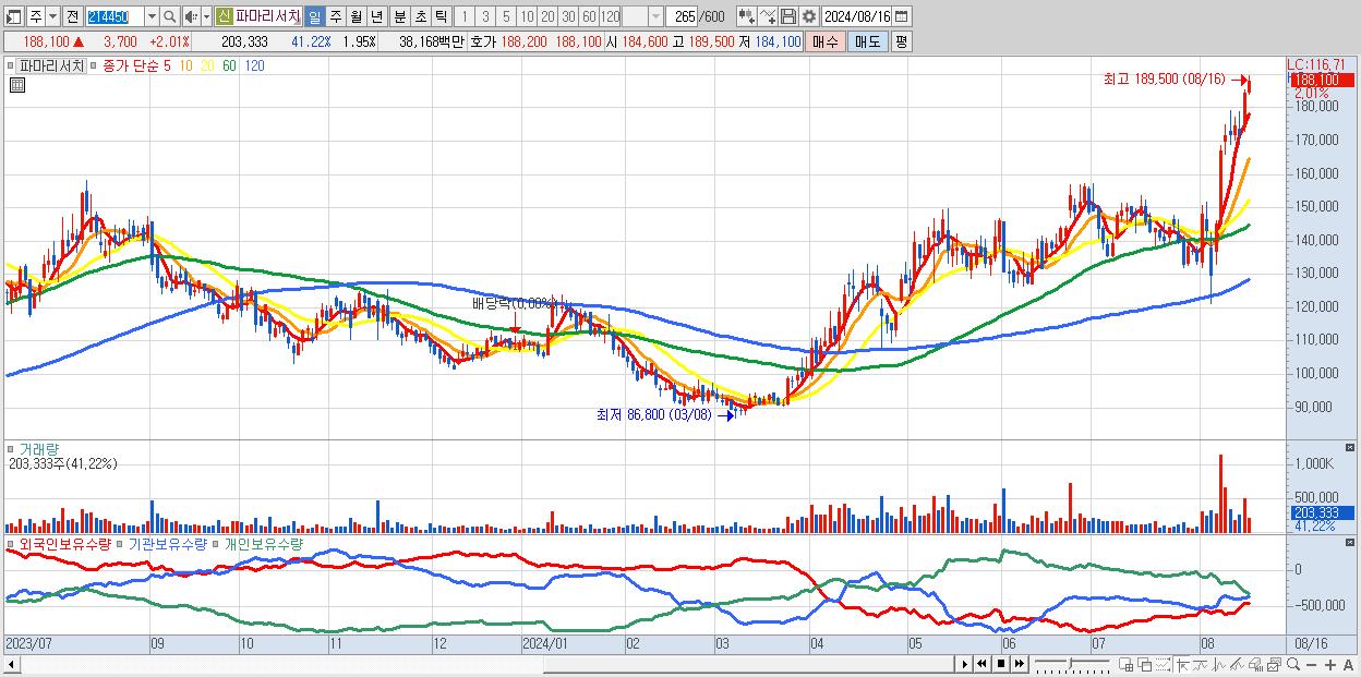 파마리서치 188,100원 ▲ 2.01% (KOSDAQ, 214450)