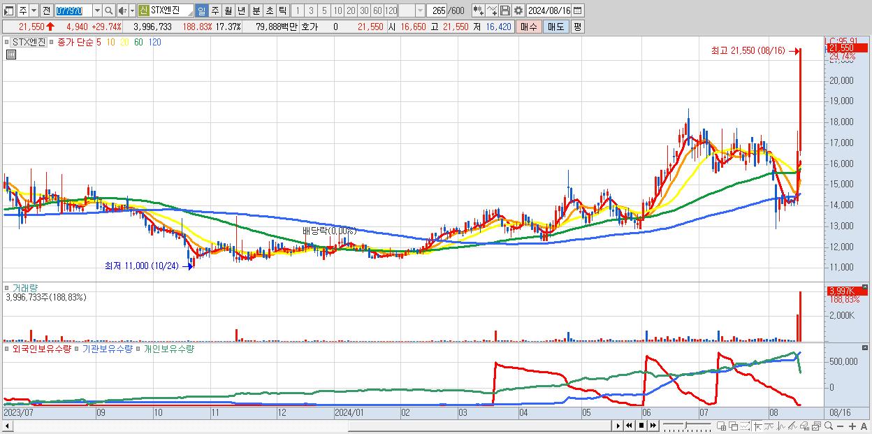 STX엔진 21,550원 ▲ 29.74% (KOSPI, 077970)