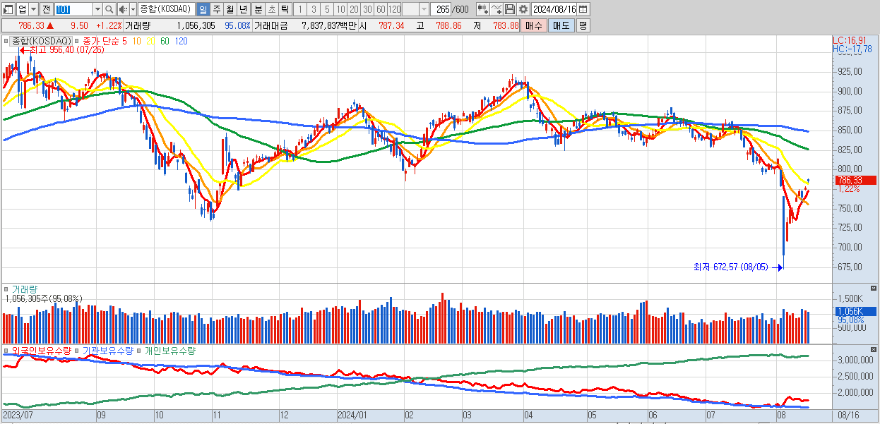 | 08/16 | 786.33 | ▲1.22% | -1,344억 | 1,010억 | 659억 | -325억 |