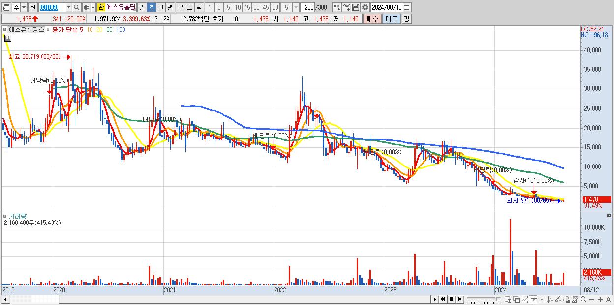 - 에스유홀딩스 (1,478원 ▲ 31.49% , 시총: 222억, 거래량: 2,160,480, 거래대금:30억)