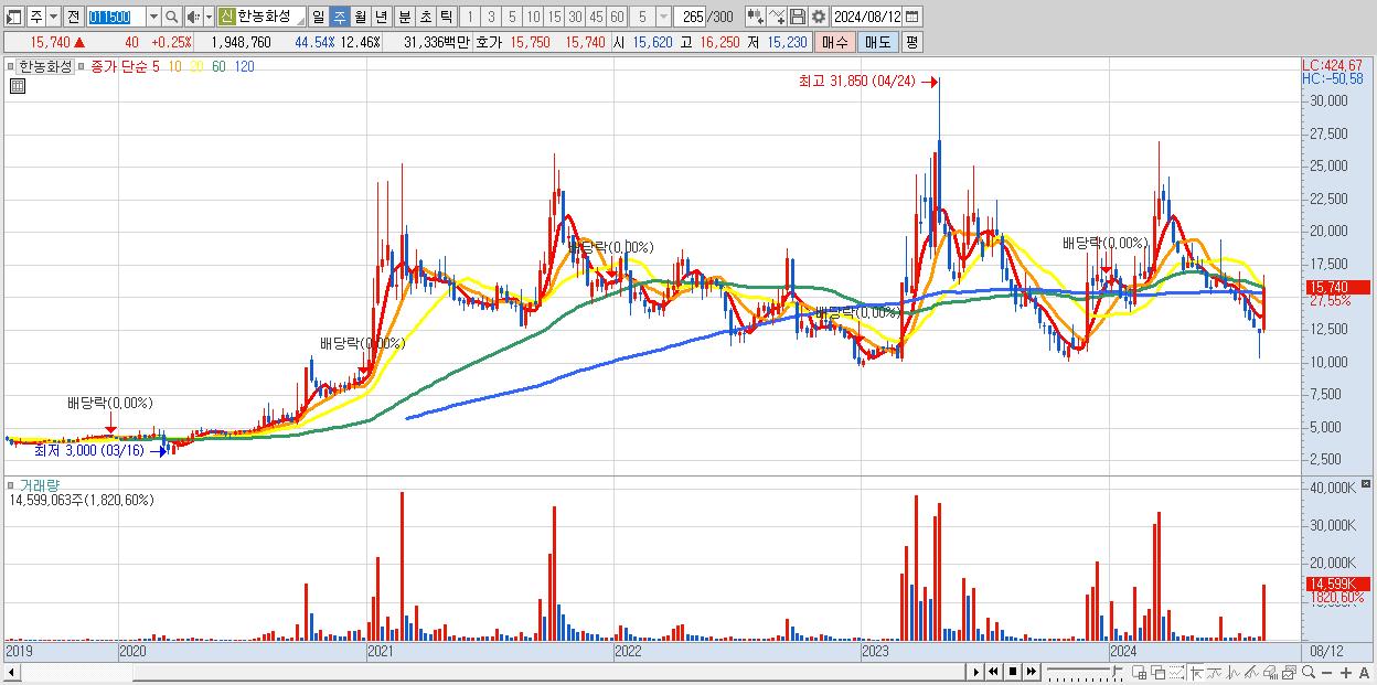 - 한농화성 (15,740원 ▲ 27.55% , 시총: 2,461억, 거래량: 14,599,063, 거래대금:2,303억)