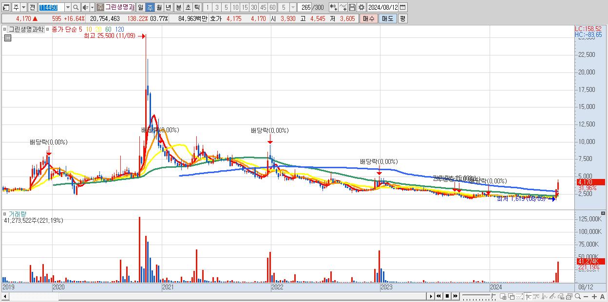 - 그린생명과학 (4,170원 ▲ 31.96% , 시총: 834억, 거래량: 41,273,522, 거래대금:1,512억)