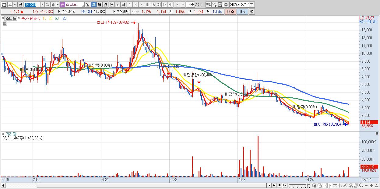 - 소니드 (1,174원 ▲ 32.66% , 시총: 474억, 거래량: 28,211,447, 거래대금:308억)