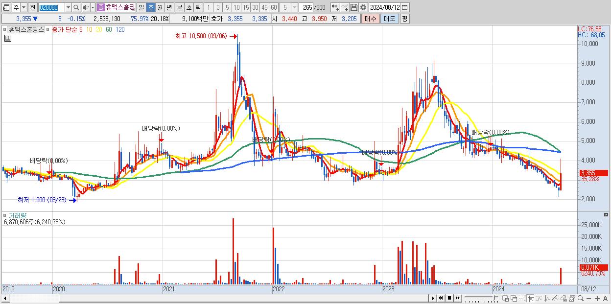 - 휴맥스홀딩스 (3,355원 ▲ 35.28% , 시총: 422억, 거래량: 6,870,606, 거래대금:247억)