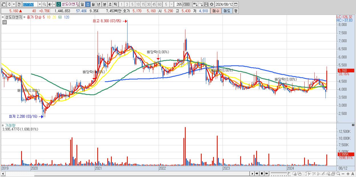 - 성도이엔지 (5,160원 ▲ 33.16% , 시총: 798억, 거래량: 3,995,477, 거래대금:196억)