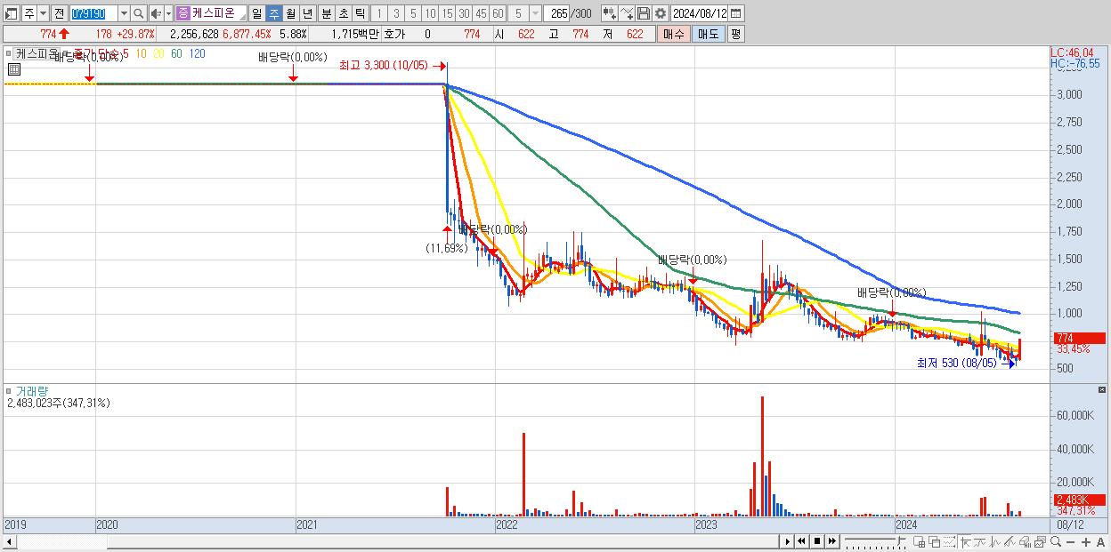 - 케스피온 (774원 ▲ 33.45% , 시총: 297억, 거래량: 2,483,023, 거래대금:19억)