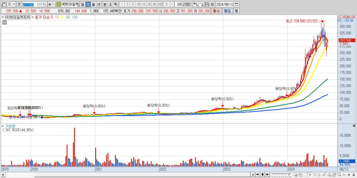 - HD현대일렉트릭 (297,500원 ▲ 2.94% , 시총: 107,240억, 거래량: 1,747,763, 거래대금:5,013억)