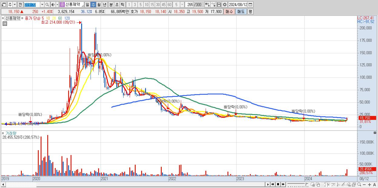 - 신풍제약 (18,150원 ▲ 31.81% , 시총: 9,617억, 거래량: 28,455,528, 거래대금:4,924억)