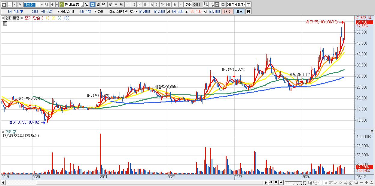 - 현대로템 (54,400원 ▲ 17.62% , 시총: 59,373억, 거래량: 17,949,564, 거래대금:9,353억)