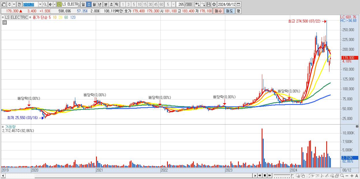 - LS ELECTRIC (179,300원 ▲ 4.18% , 시총: 53,790억, 거래량: 2,712,467, 거래대금:4,785억)
