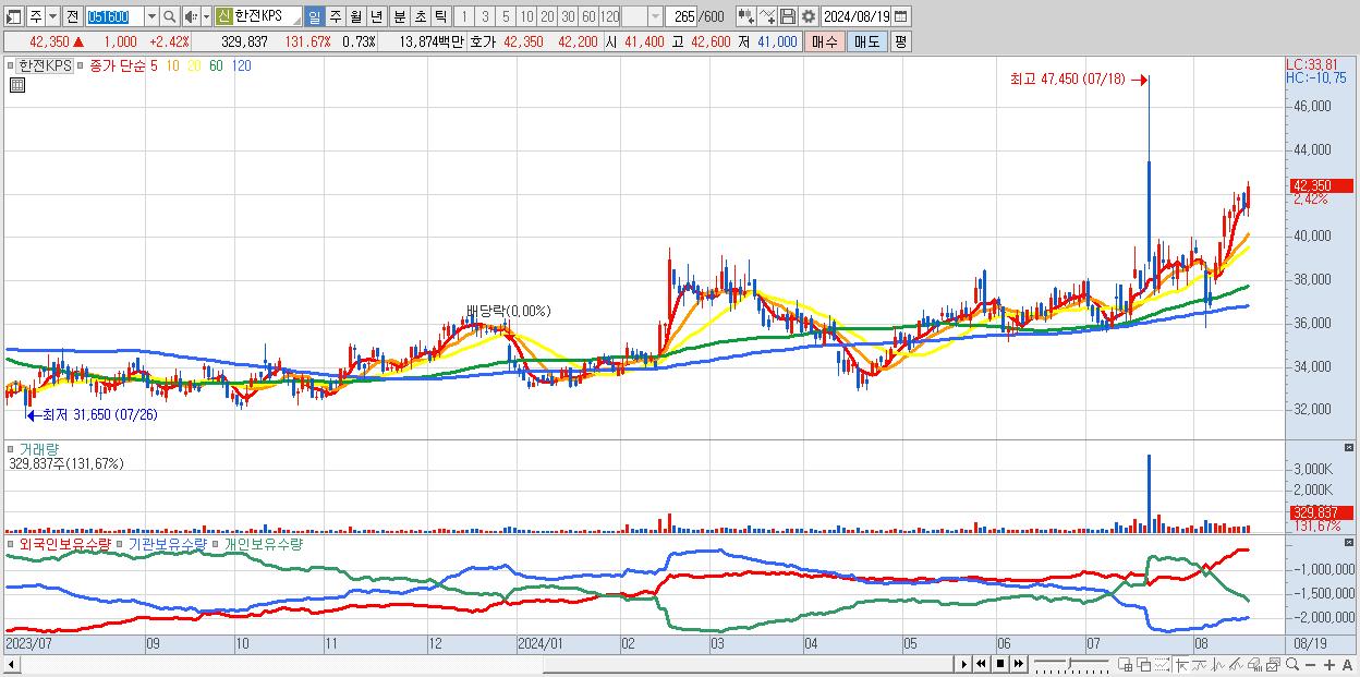 - 한전KPS (42,350원 ▲ 2.42% , 시총: 19,058억, 외국인 순매수 거래금:36억)