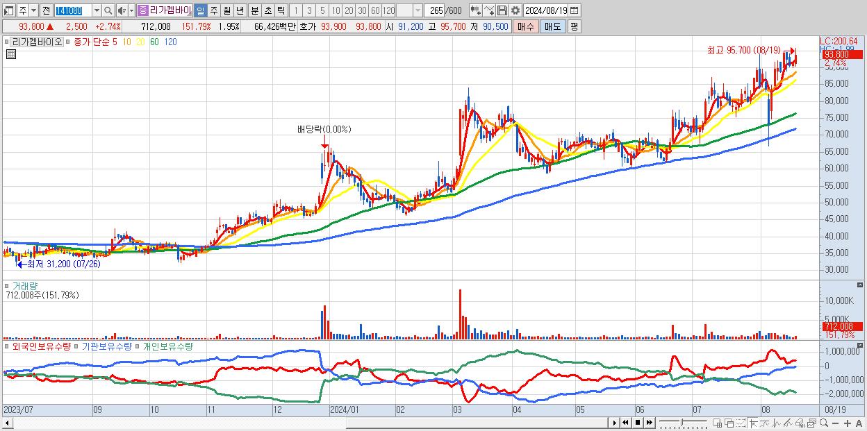 - 리가켐바이오 (93,800원 ▲ 2.74% , 시총: 34,300억, 외국인 순매수 거래금:49억)
