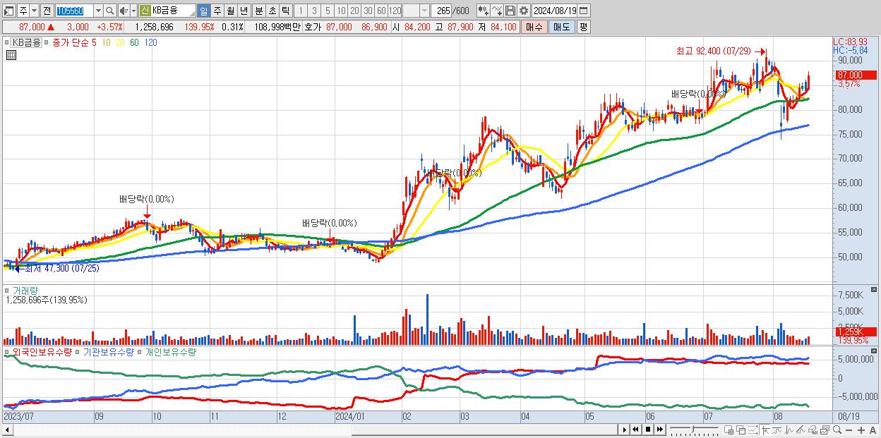 - KB금융 (87,000원 ▲ 3.57% , 시총: 351,055억, 외국인 순매수 거래금:238억)