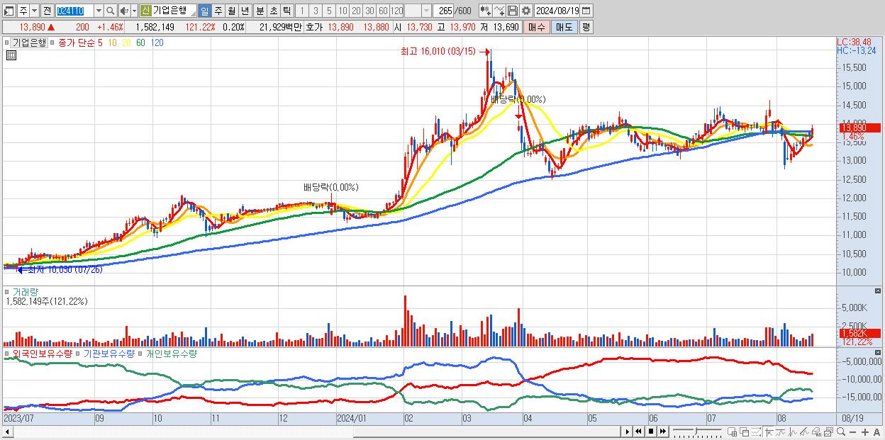- 기업은행 (13,890원 ▲ 1.46% , 시총: 110,762억, 외국인 순매수 거래금:89억)