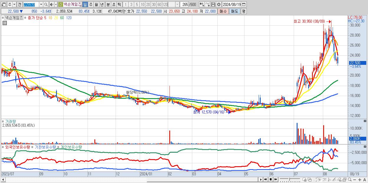 - 넥슨게임즈 (22,500원 ▼ -3.64% , 시총: 14,815억, 외국인 순매수 거래금:50억)