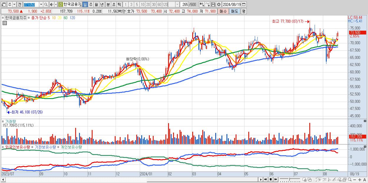 - 한국금융지주 (73,500원 ▲ 2.65% , 시총: 40,959억, 외국인 순매수 거래금:37억)