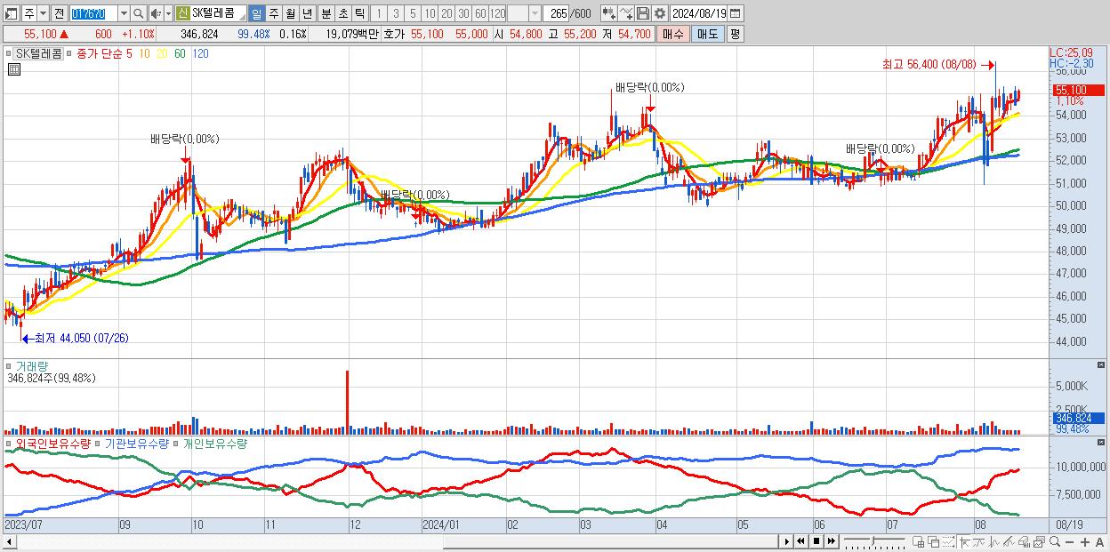 - SK텔레콤 (55,100원 ▲ 1.1% , 시총: 118,349억, 외국인 순매수 거래금:73억)