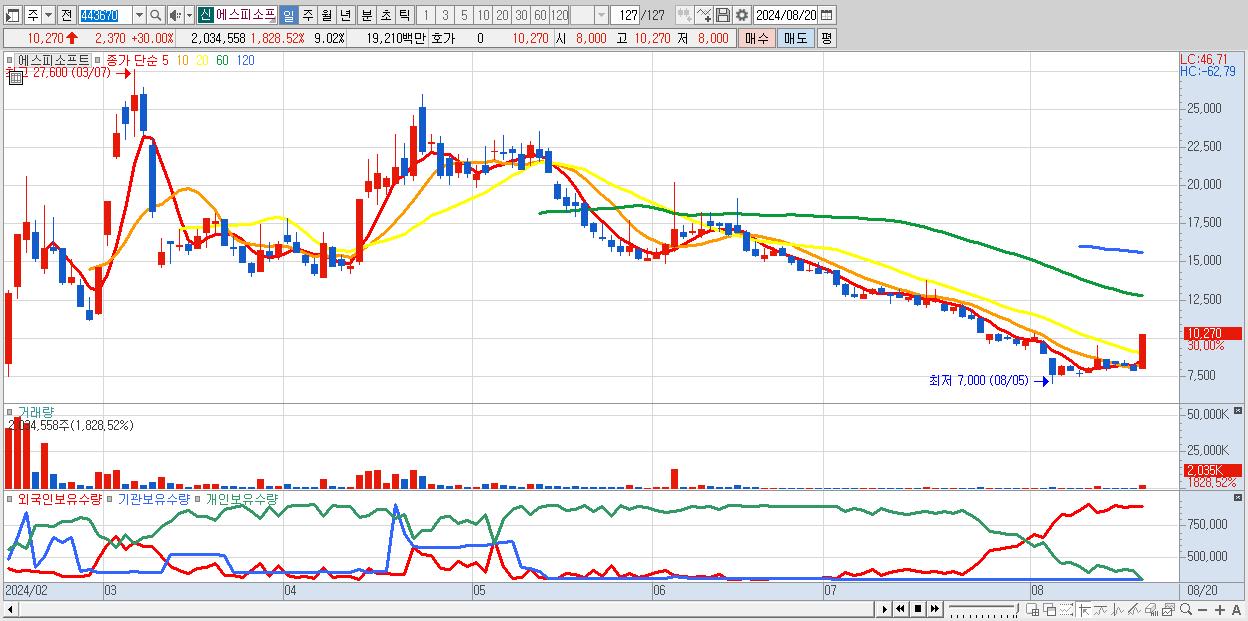 2.에스피소프트 10,270원 ▲ 30% (KOSDAQ, 443670)