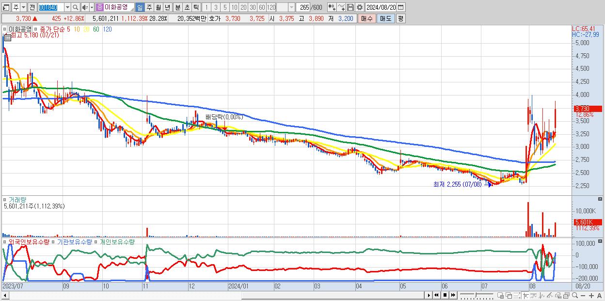 - 이화공영 (3,730원 ▲ 12.86% , 시총: 739억, 거래량: 5,601,211, 거래대금:204억)