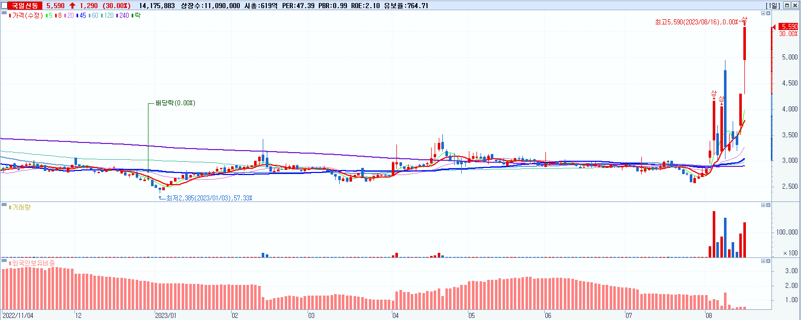국일신동 5,590원 ▲ 30% (KOSDAQ, 060480)