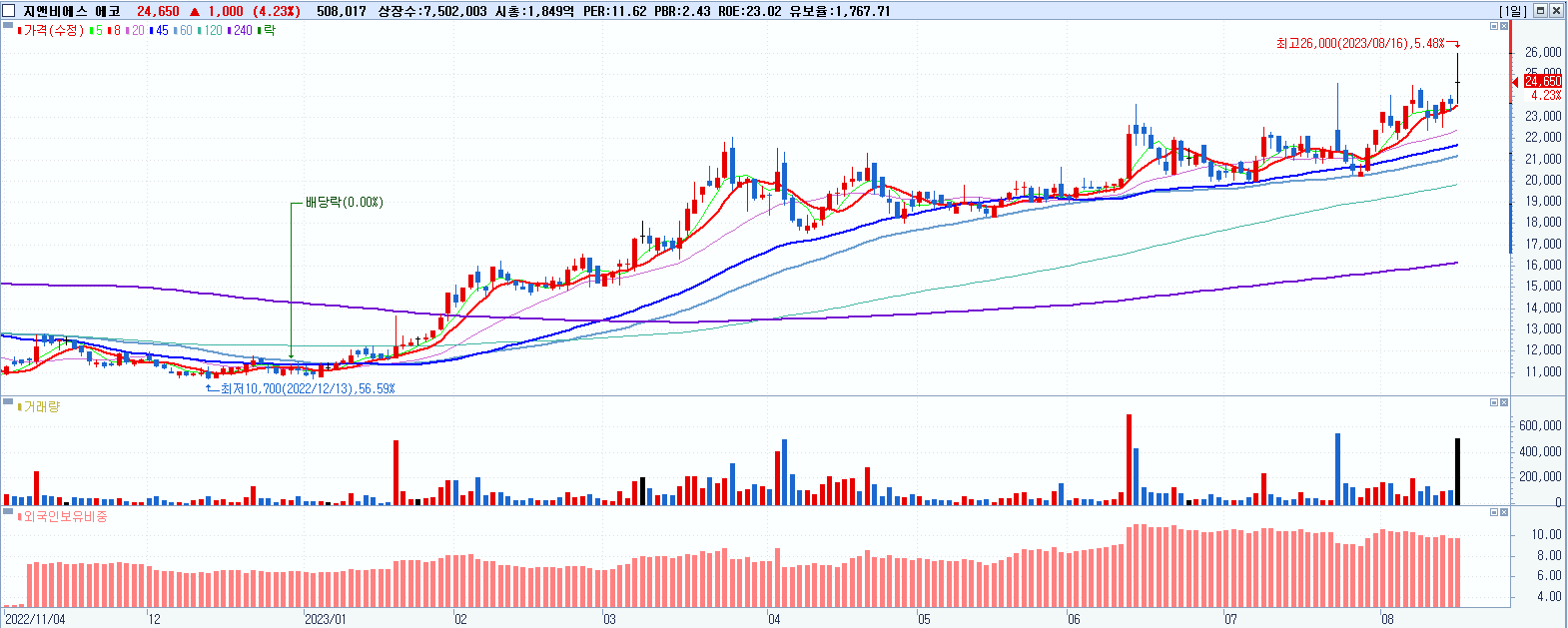 지앤비에스 에코 24,650원 ▲ 4.23% (KOSDAQ, 382800)