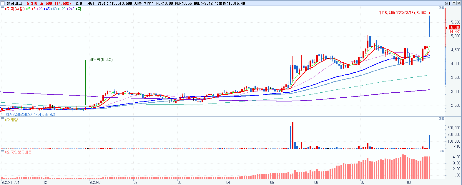 시총: 9,792억 거래량: 2,338,913 거래대금:292억