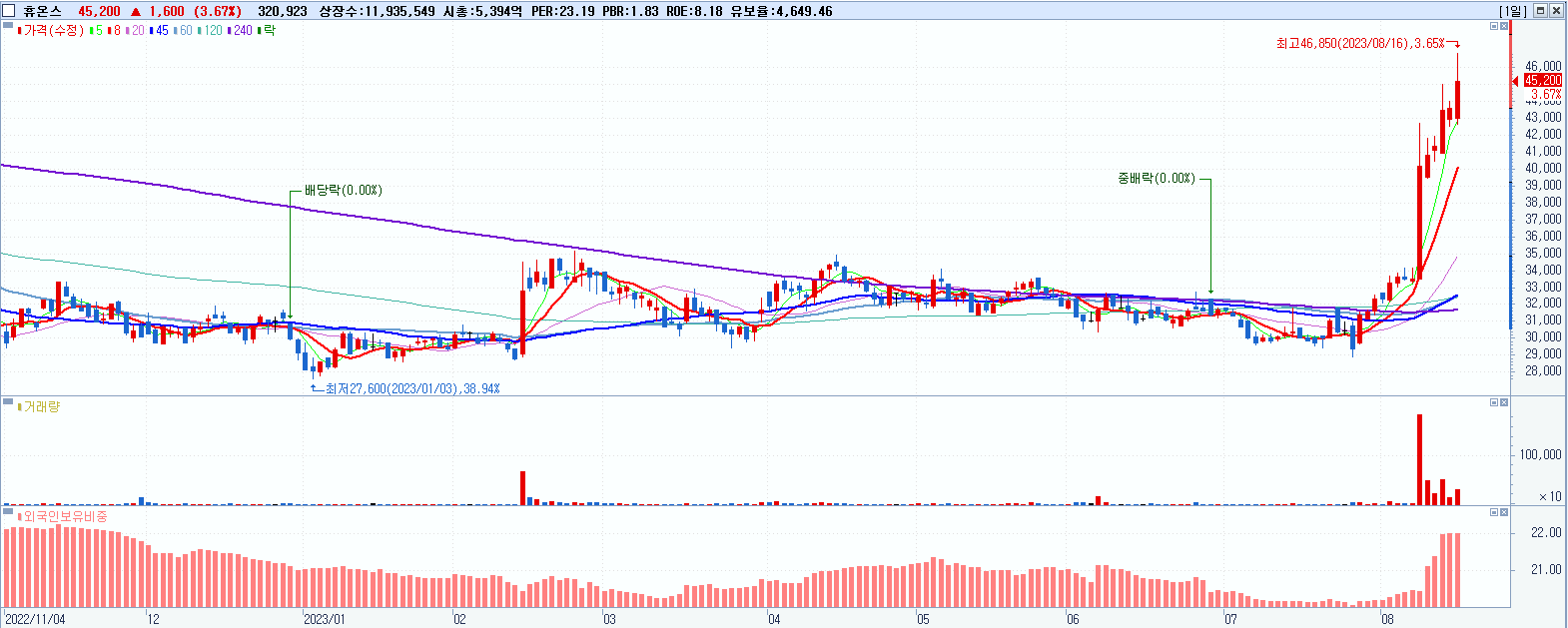 휴온스 45,200원 ▲ 3.67% (KOSDAQ, 243070)