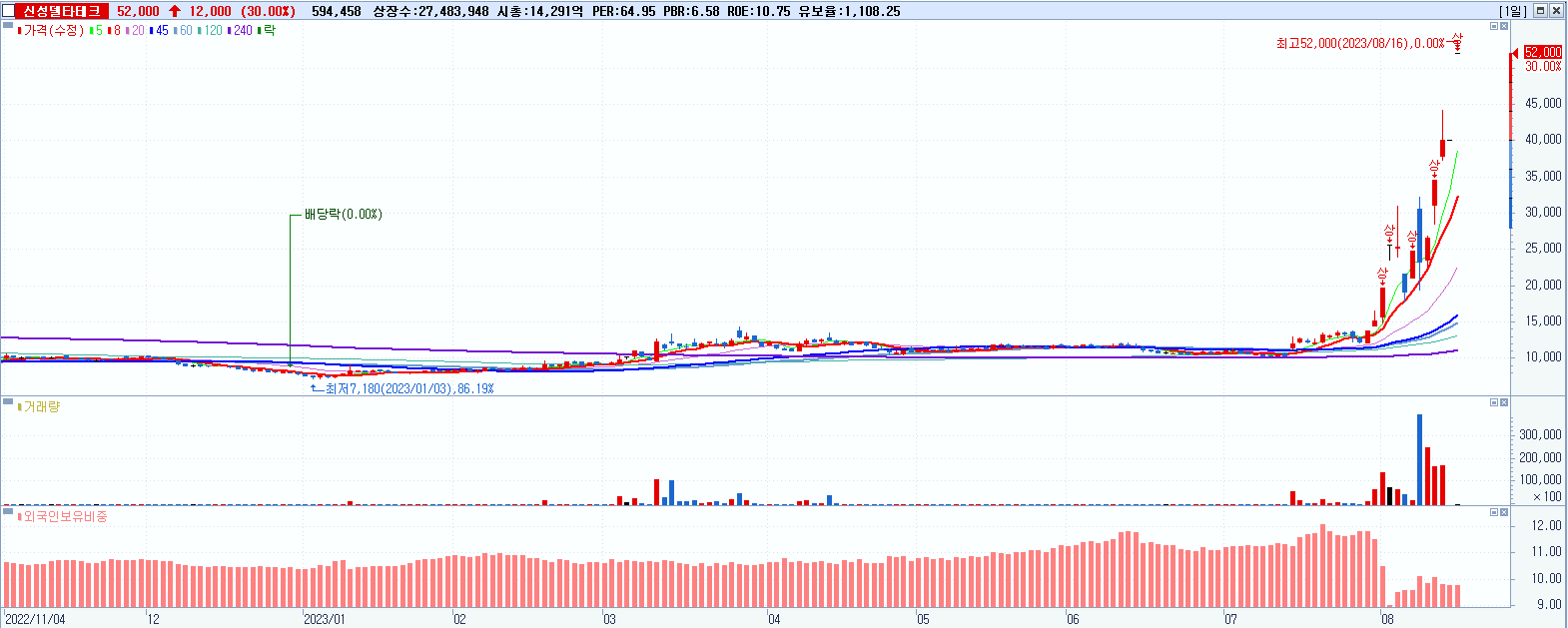 신성델타테크 52,000원 ▲ 30% (KOSDAQ, 065350)