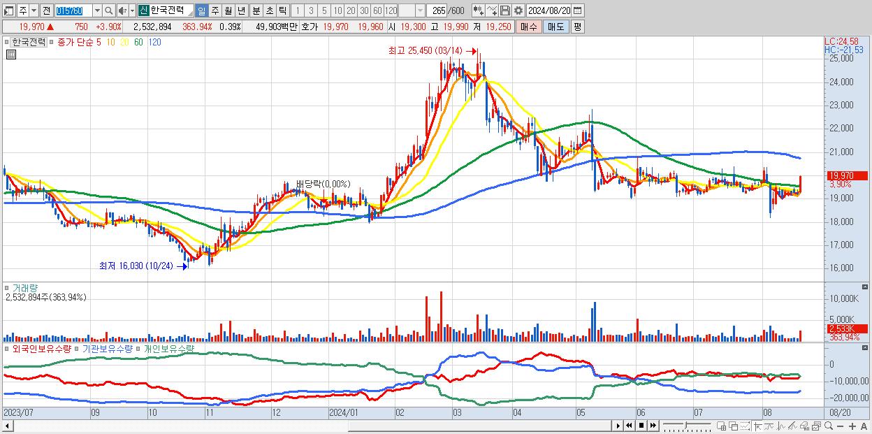 - 한국전력 (19,970원 ▲ 3.9% , 시총: 128,200억, 외국인 순매수 거래금:98억)