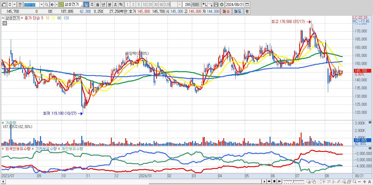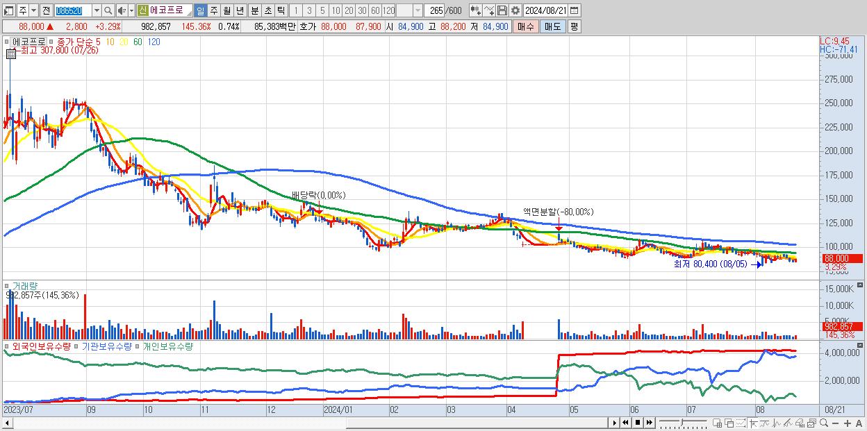 시총: 819,000억 거래량: 488,078 거래대금:1,696억 업종:전기전자