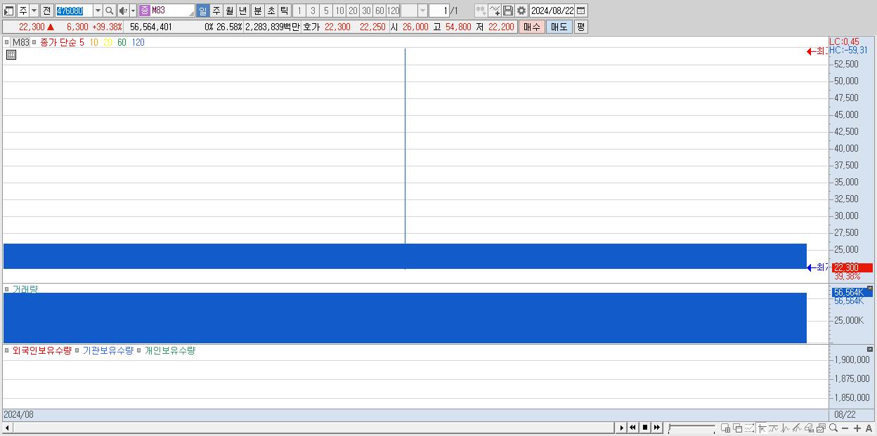 1.M83 22,300원 ▲ 39.38% (KOSDAQ, 476080)