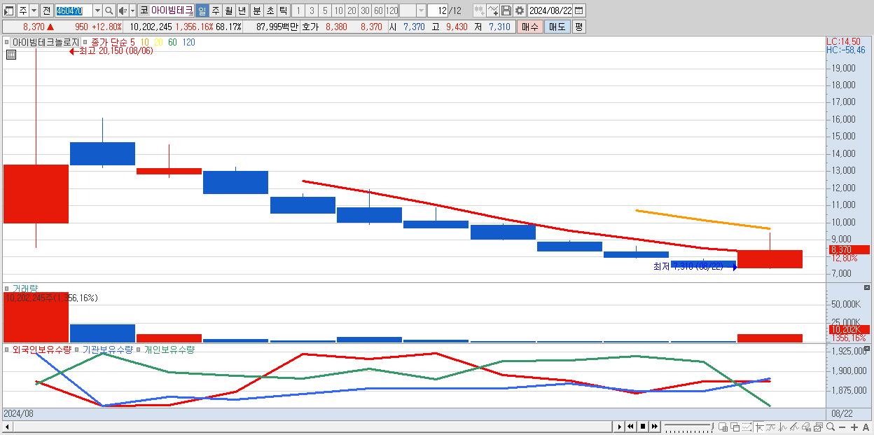 - 아이엠비디엑스 (19,780원 ▲ 9.58% , 시총: 2,773억, 거래량: 5,515,224, 거래대금:1,077억)