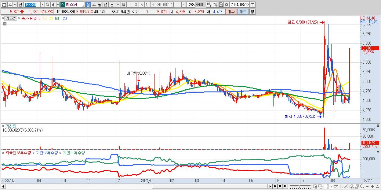 - 예스24 (5,870원 ▲ 29.87% , 시총: 1,468억, 거래량: 10,066,820, 거래대금:550억)