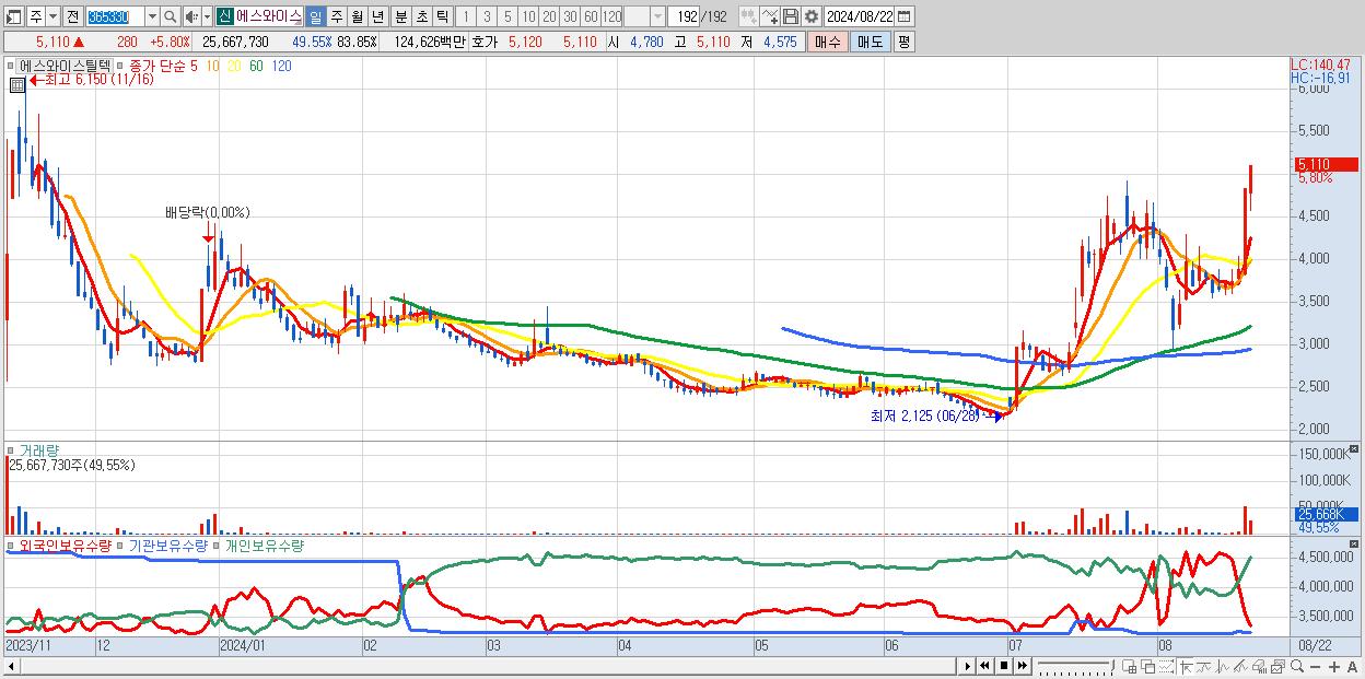 - 에스와이스틸텍 (5,110원 ▲ 5.8% , 시총: 1,564억, 거래량: 25,667,730, 거래대금:1,246억)