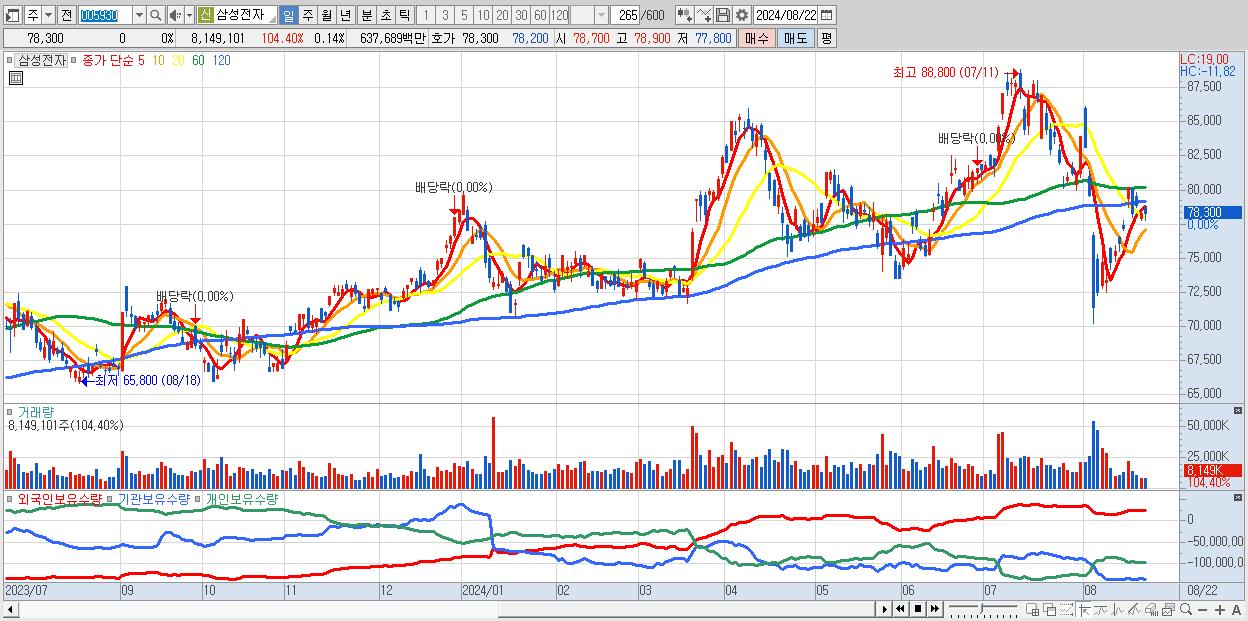 - 삼성전자 (78,300원 0% , 시총: 4,674,340억, 거래량: 8,149,101, 거래대금:6,377억)