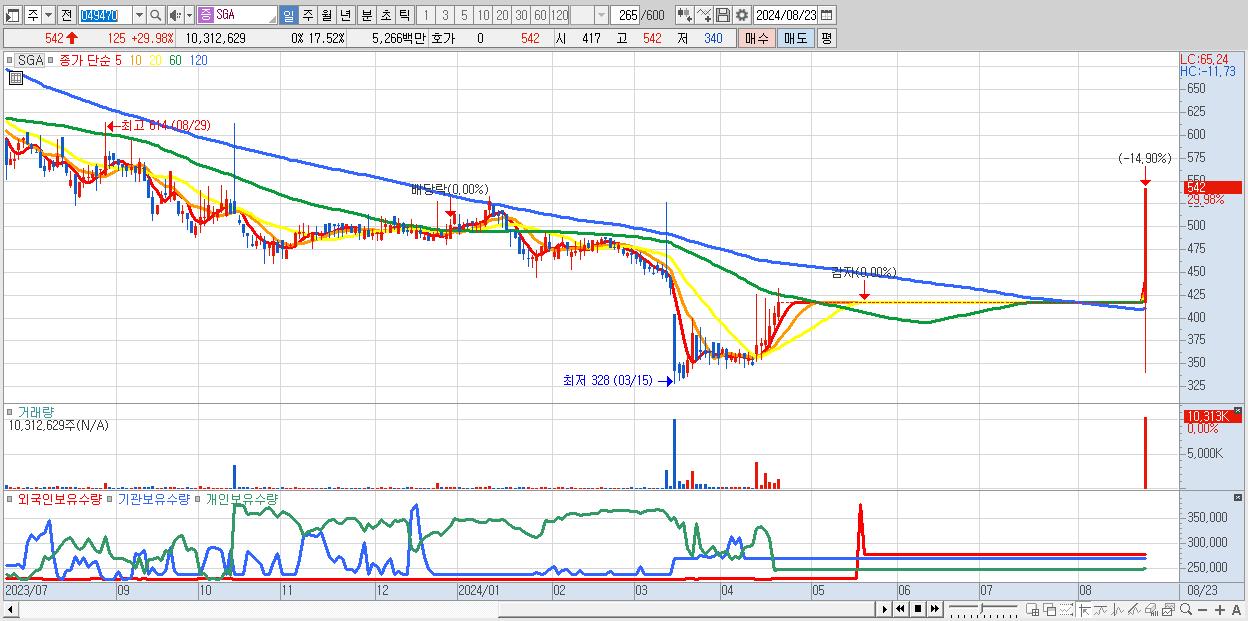 2.SGA 542원 ▲ 29.98% (KOSDAQ, 049470)
