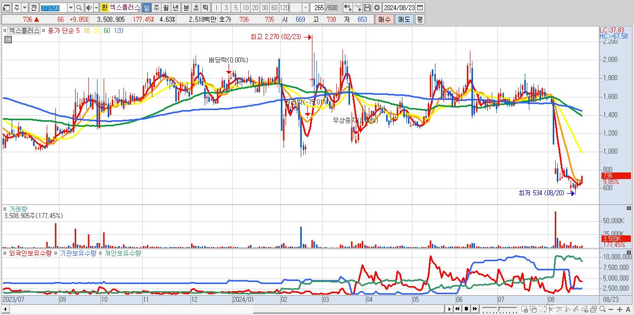- 엑스플러스 (736원 ▲ 9.85% , 시총: 557억, 거래량: 3,508,905, 거래대금:25억)