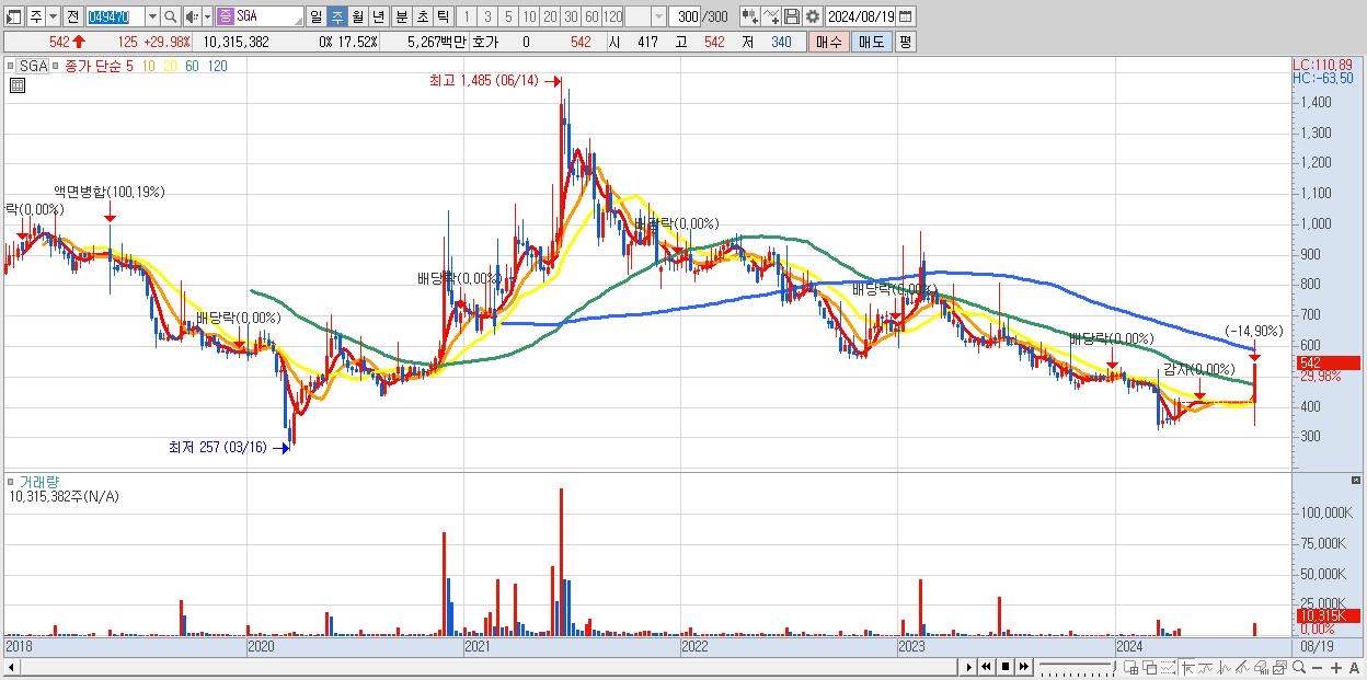 - SGA (542원 ▲ 29.98% , 시총: 319억, 거래량: 10,315,382, 거래대금:53억)