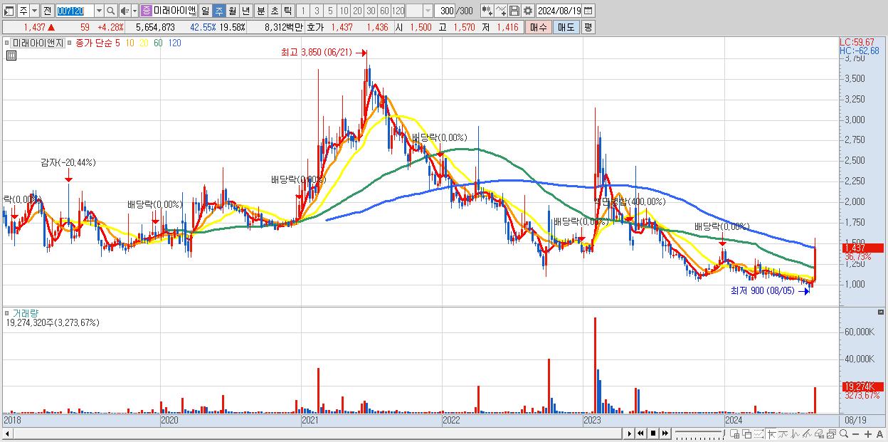 - 미래아이앤지 (1,437원 ▲ 36.73% , 시총: 415억, 거래량: 19,274,320, 거래대금:264억)