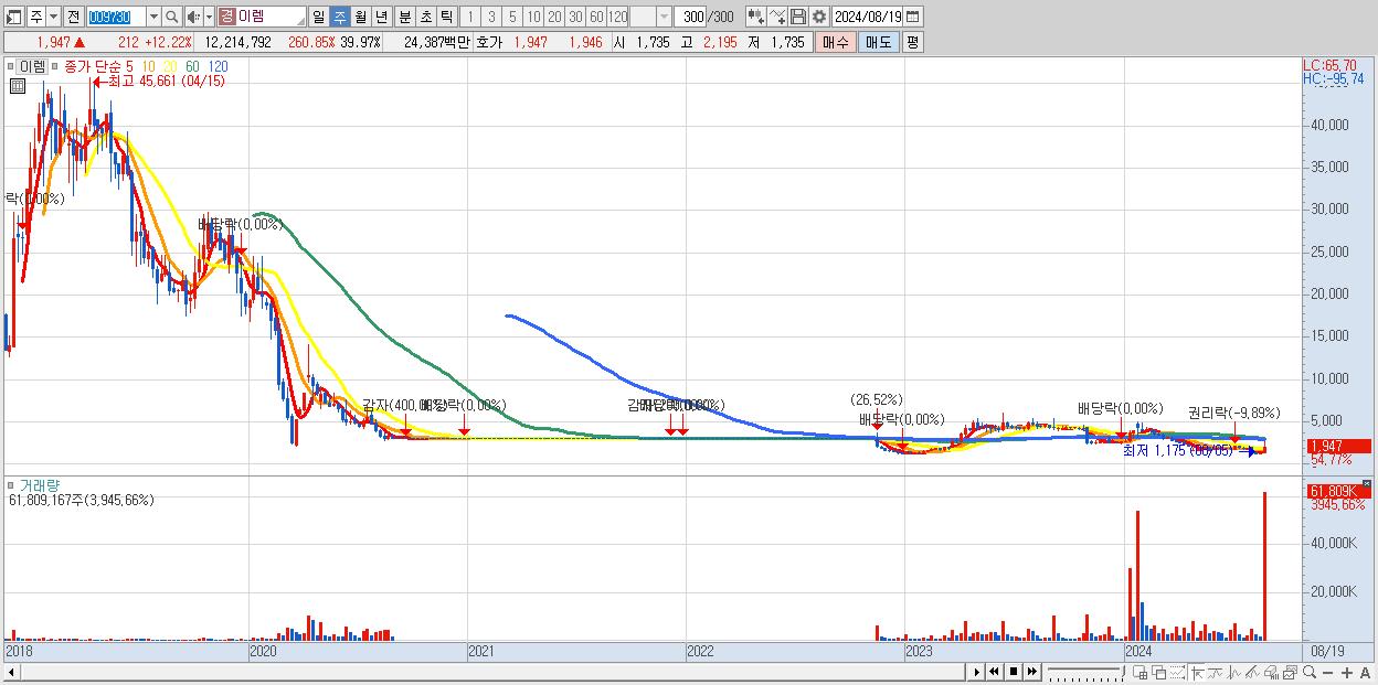 - 이렘 (1,947원 ▲ 54.77% , 시총: 595억, 거래량: 61,809,167, 거래대금:1,349억)