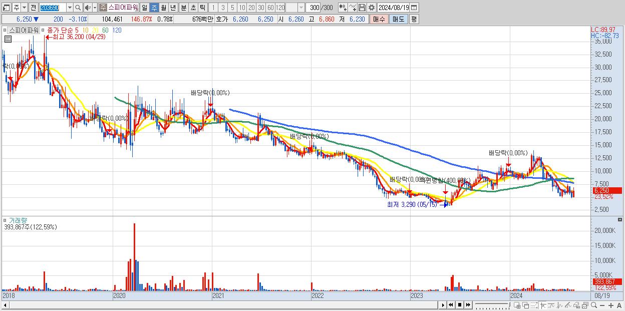 - 스피어파워 (6,250원 ▲ 23.52% , 시총: 834억, 거래량: 393,867, 거래대금:24억)