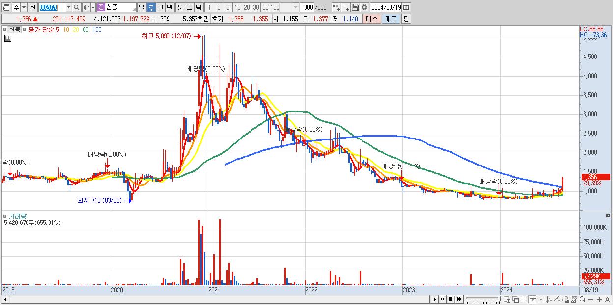 - 신풍 (1,356원 ▲ 29.39% , 시총: 474억, 거래량: 5,428,678, 거래대금:68억)