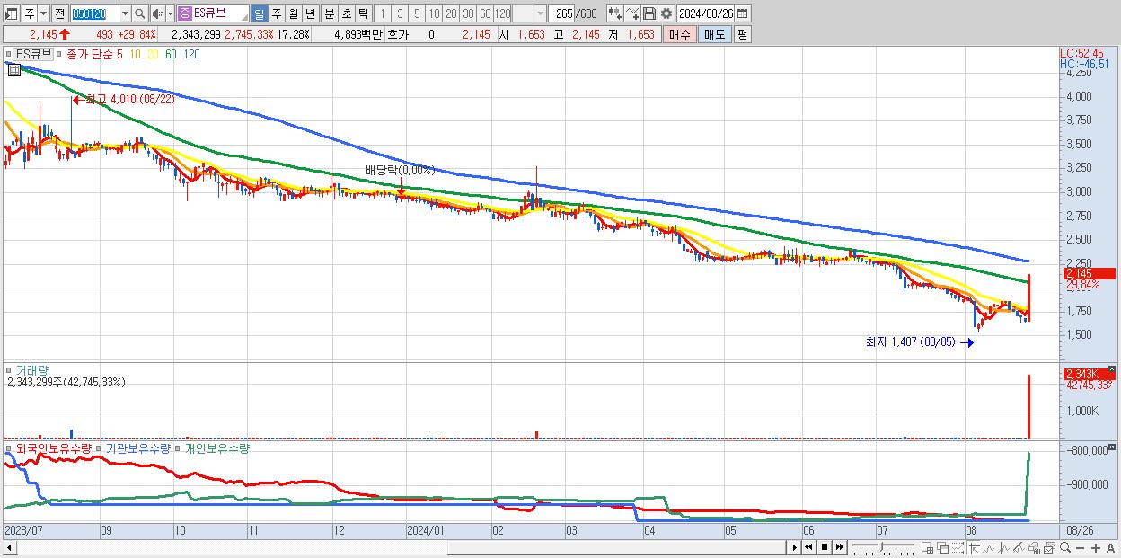 2.ES큐브 2,145원 ▲ 29.84% (KOSDAQ, 050120)