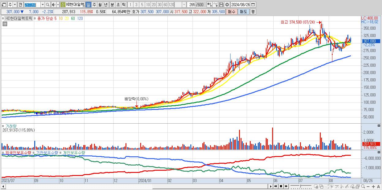 - HD현대일렉트릭 (307,000원 ▼ -2.23% , 시총: 110,665억, 외국인 순매수 거래금:79억)