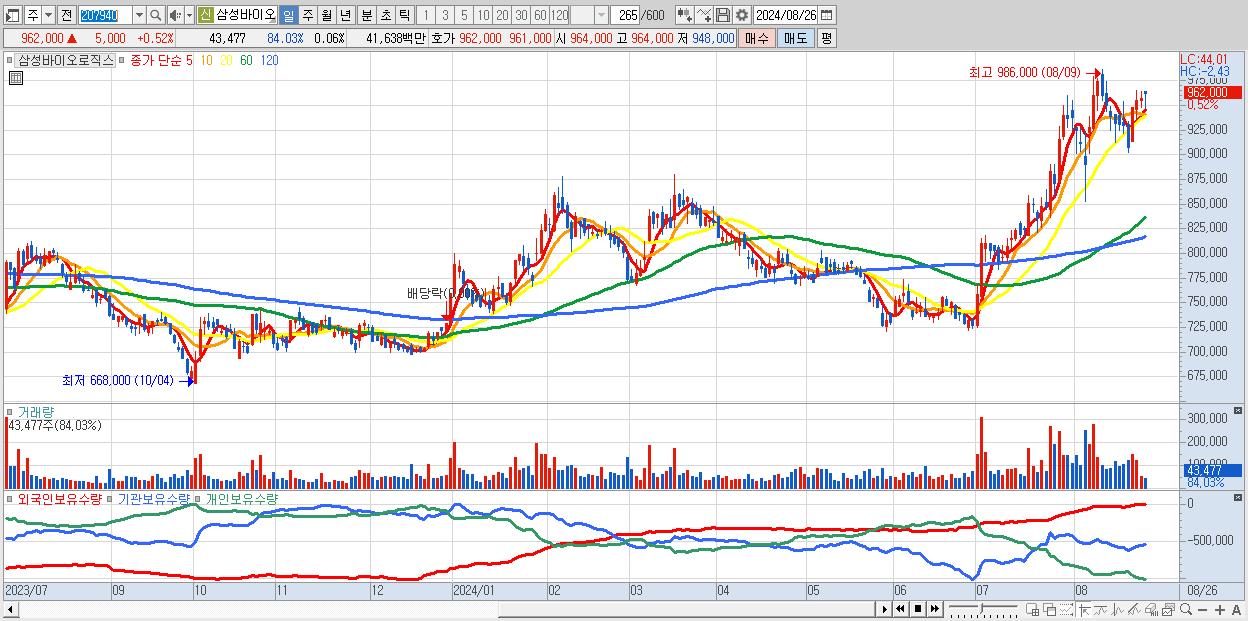 30.삼성바이오로직스 962,000원 ▲ 0.52% (KOSPI, 207940)