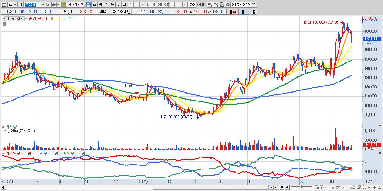 | 2024-08-23 | 151억 | 13억 | -77억 | 0억 | -86억 |