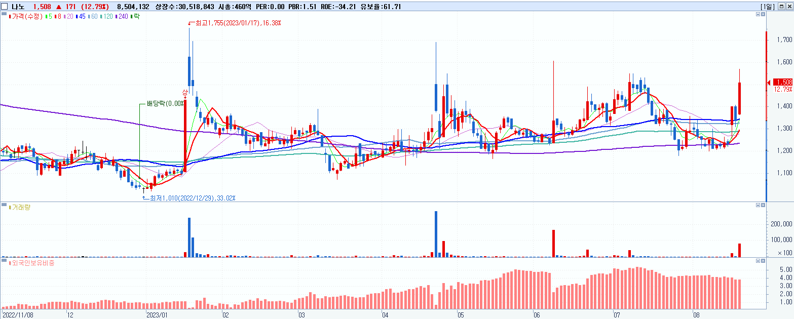 30.나노 1,508원 ▲ 12.79% (KOSDAQ, 187790)