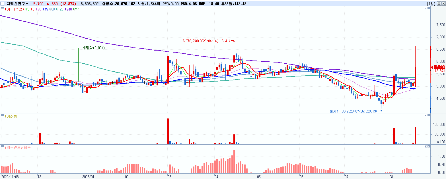 29.차백신연구소 5,790원 ▲ 12.87% (KOSDAQ, 261780)